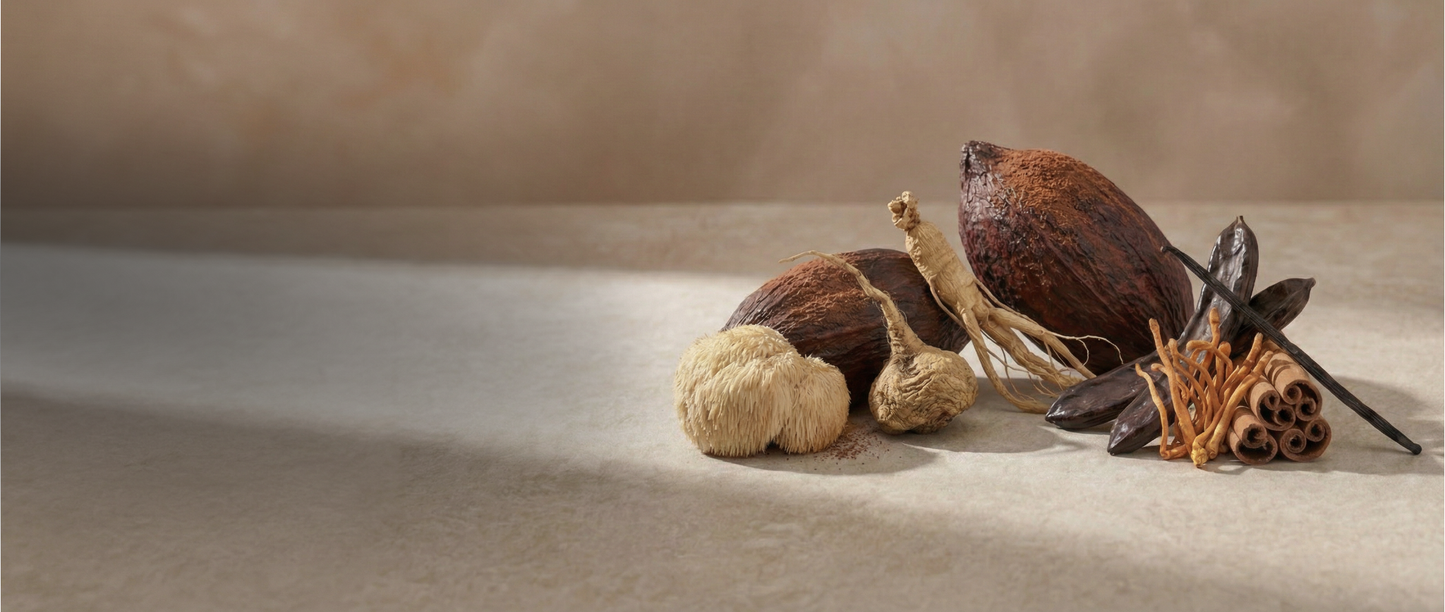 We use fruiting-body mushroom extracts selected for their relevance to focus, endurance, and resilience, and integrate them into a balanced, daily system, not as isolated supplements.