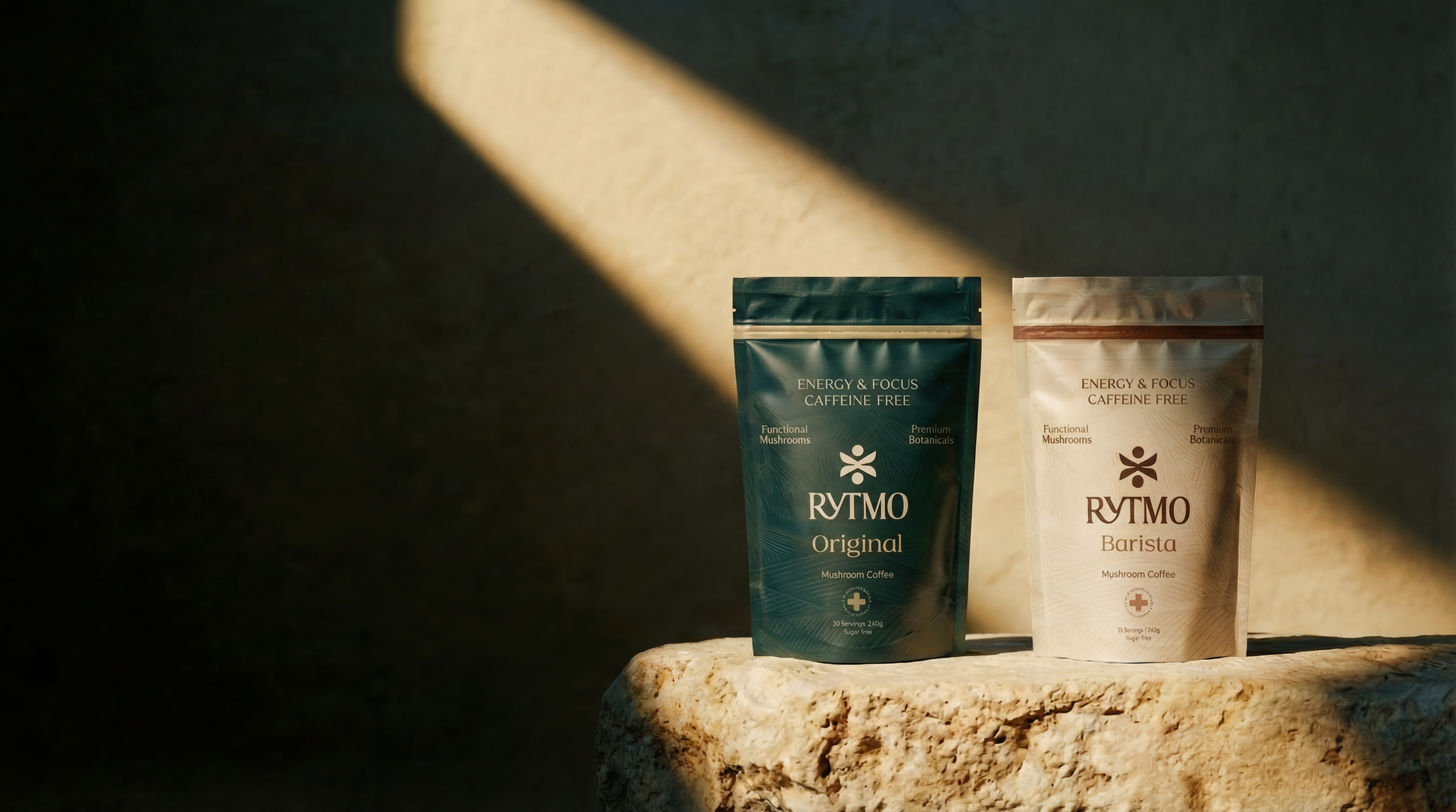 RYTMO is a stacked formula, calibrated so mushrooms, adaptogens, botanicals, fibres, and minerals work together as a system.