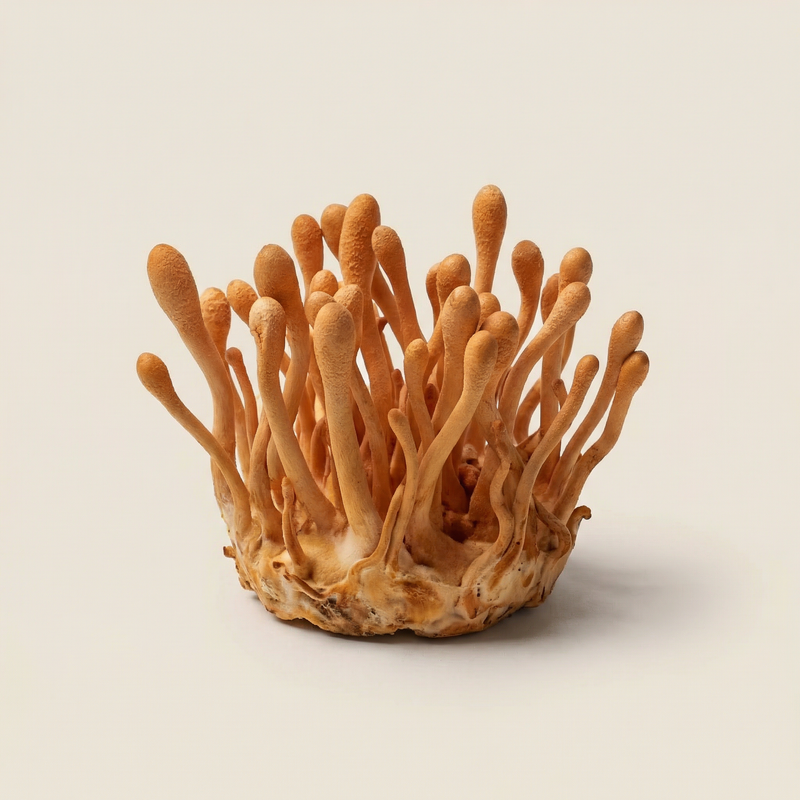 A fruiting-body mushroom traditionally used to support stamina, oxygen efficiency, and sustained physical energy.